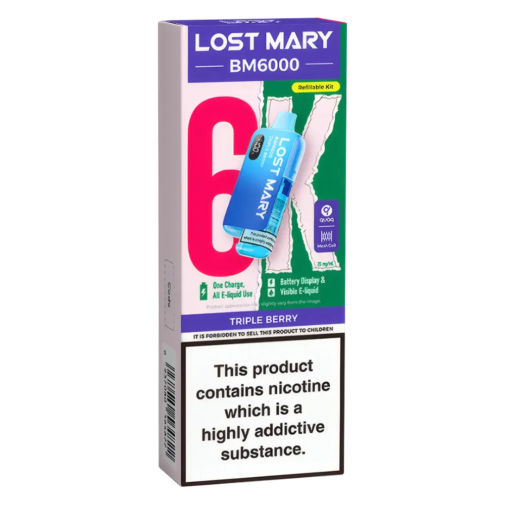 Lost Mary Triple Berry 6000 puffs Impressive puff count with the pod system design gives you 6000 puffs of Triple Berry.