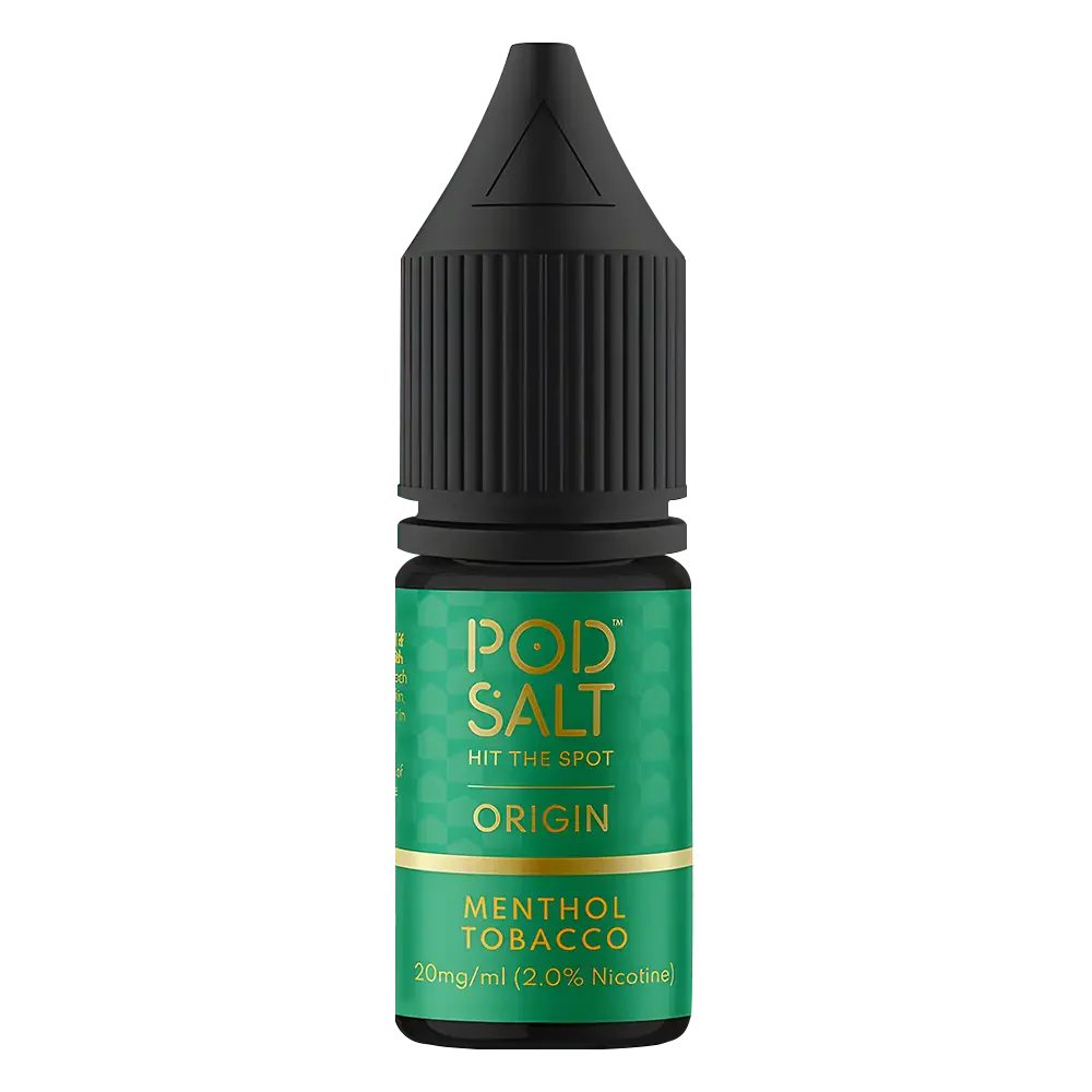 Pod Salt Origin Menthol Tobacco Nic Salt Vape Juice delivers the perfect fusion of smooth, earthy tobacco and crisp menthol freshness. Each puff starts with a rich, smoky tobacco flavour followed by a refreshing cool exhale, creating a balanced and satisfying vape that’s ideal for former smokers and menthol lovers alike.